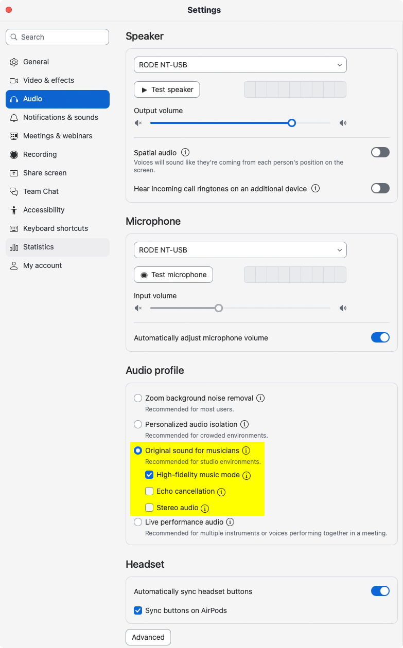 Slik kan du endre innstillinger i Zoom for å kunne gjøre lydopptak av høyere kvalitet, f.eks. dersom du skal spille inn et intervju via Zoom til en podcast e.l.