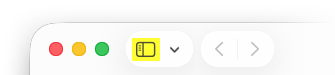 - Klikk på Sidepanel-knappen øverst til venstre i Safari (knappen umiddelbart til høyre for de tre fargede sirklene, se bilde nedenfor).